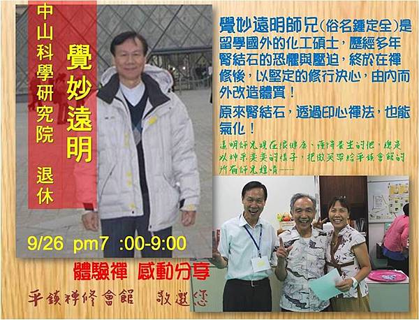 -----本週四 9/26 晚上 免費公益體驗禪 pm7:00-9:00